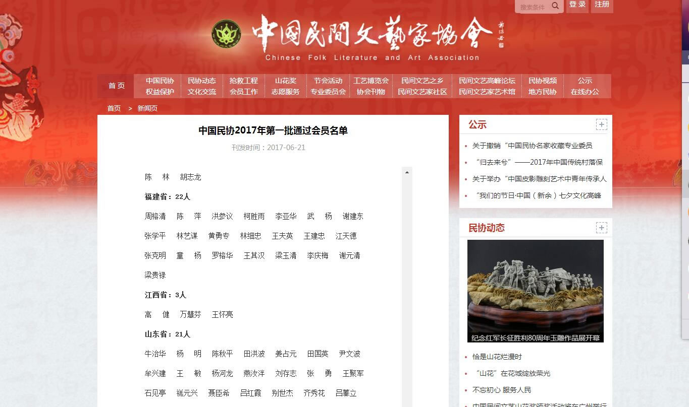 三明市王夫英 王建忠 江天德 張克明 童 楊 羅榕華 王其漢七名老師通過中國民間文藝家協(xié)會會員資格審議,成為中國民協(xié)2017年第一批會員