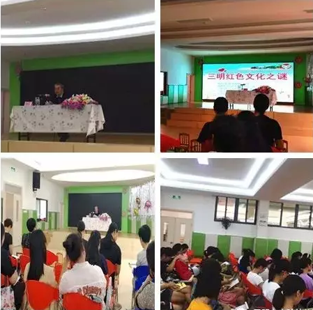 為認(rèn)真貫徹黨的十九大精神及習(xí)近平總書(shū)記關(guān)于“把紅色資源利用好、把紅色傳統(tǒng)發(fā)揚(yáng)好、把紅色基因傳承好”的要求,8月31日上午,三明市實(shí)驗(yàn)幼兒園邀請(qǐng)中國(guó)民間文藝家協(xié)會(huì)會(huì)員、福建省民間文藝家協(xié)會(huì)副主席、三明市民間文藝家協(xié)會(huì)主席、三明市博物館館長(zhǎng)劉曉迎給全體教職工開(kāi)展《三明紅色文化之謎》的專(zhuān)題講座。