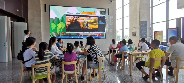 接下來,就到了我們“愛在七夕”的活動環(huán)節(jié)。講解員借助幻燈片、動畫片的形式,生動形象的介紹了七夕節(jié)的相關(guān)知識,并教小朋友們誦讀有關(guān)七夕的詩詞《古詩十九首·迢迢牽牛星》和《秋夕》,博物館大廳里回蕩著朗朗書聲。