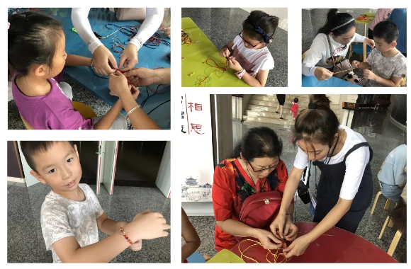 最后就是“七夕斗巧”之編彩繩環(huán)節(jié)了。講解員演示了如何用彩繩編出秘魯結(jié)和平結(jié),再串上自己喜歡的飾品編出精致的手鏈。小朋友們根據(jù)講解員教的步驟,紛紛動手制作,與家長配合完成了五顏六色的手鏈。