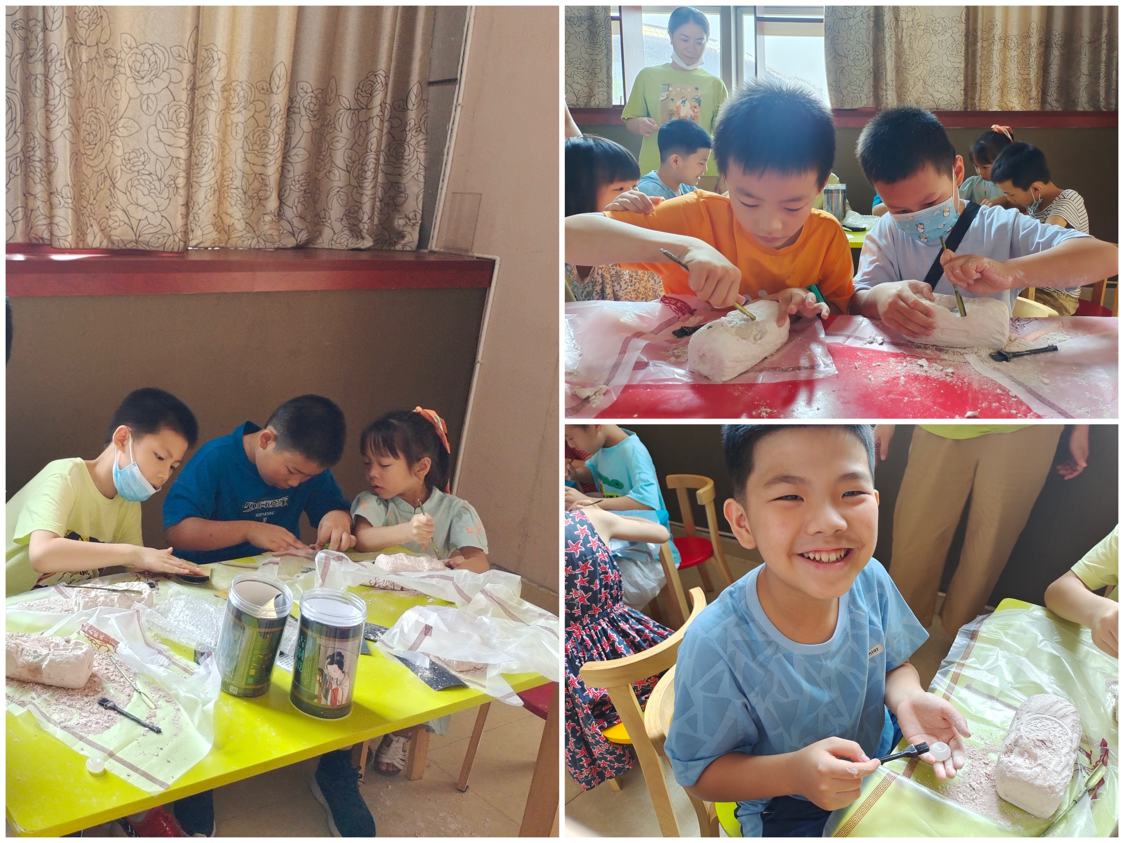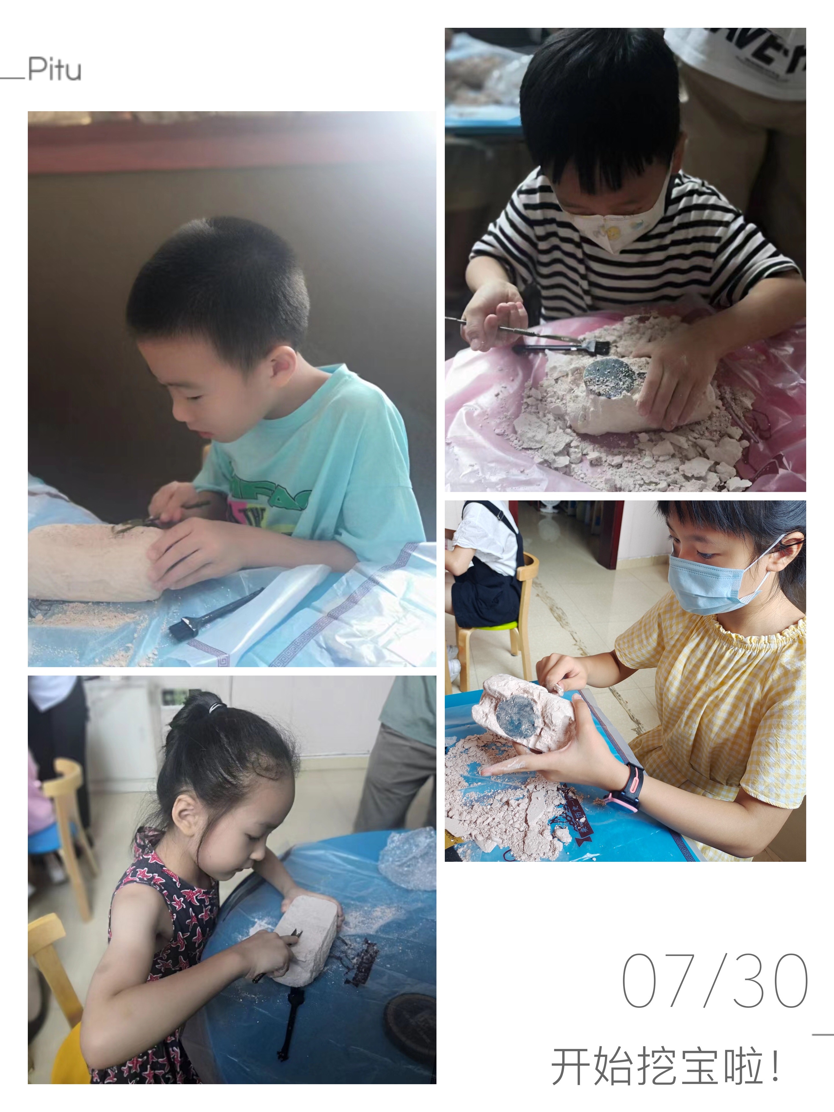 到了考古環(huán)節(jié),在講解員老師的指導(dǎo)下,同學(xué)們開始動(dòng)手操作,或敲、或砸、或挖……瞧瞧,他們一個(gè)個(gè)認(rèn)真的小眼神。“我挖到啦!是銅鏡!”“我也挖到了,看,是玉石”……伴隨著同學(xué)們的驚喜聲,一個(gè)個(gè)寶物出現(xiàn)在了大家面前。各式各樣的青銅鏡、玉石、刀幣……最后再用磨砂紙對(duì)銅鏡進(jìn)行反復(fù)打磨,一面面可正衣冠的鏡子就出現(xiàn)在大家面前啦!