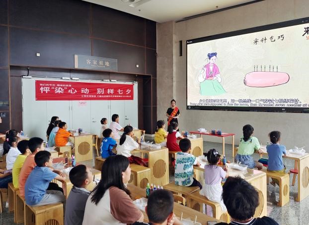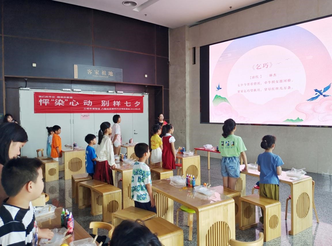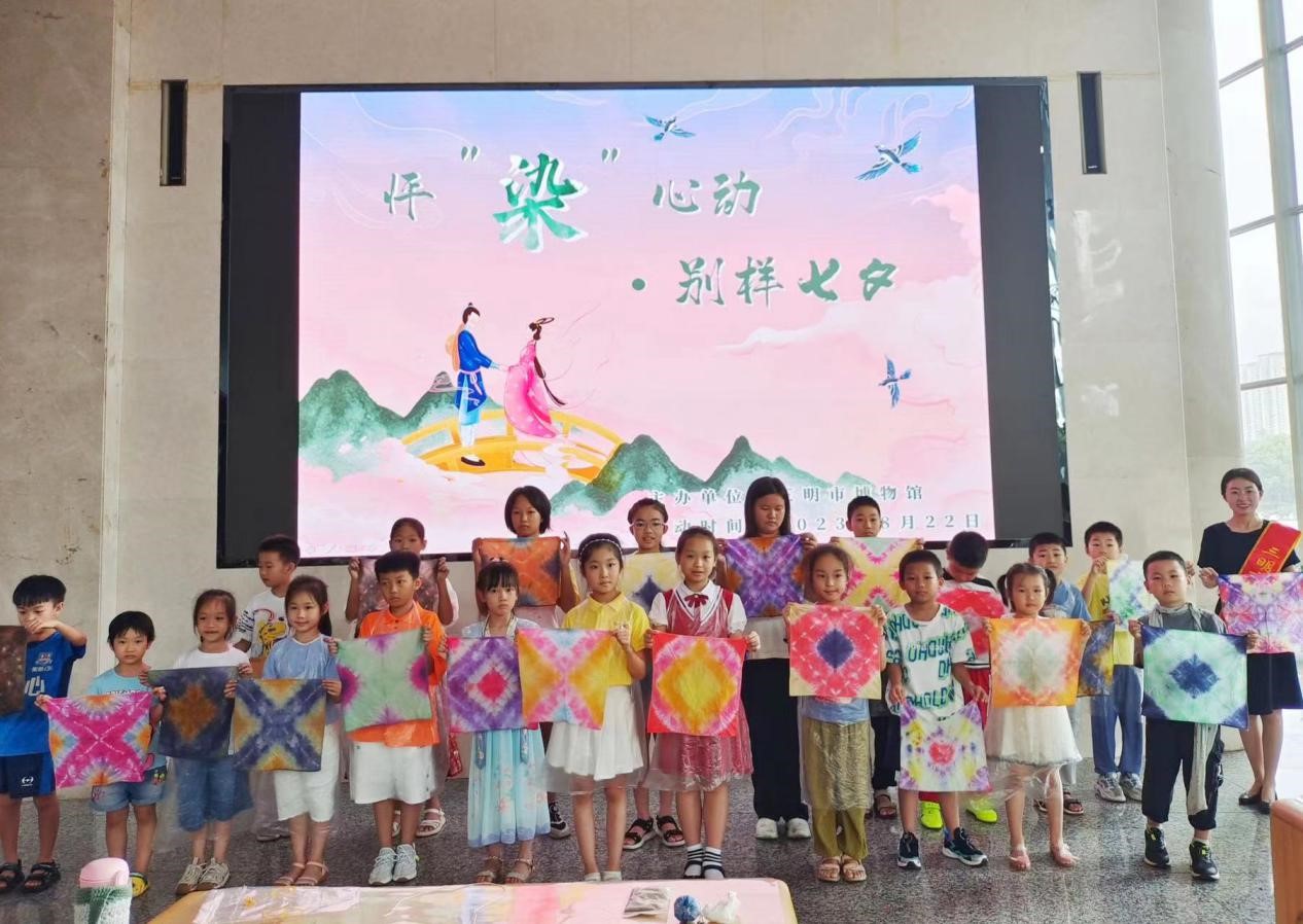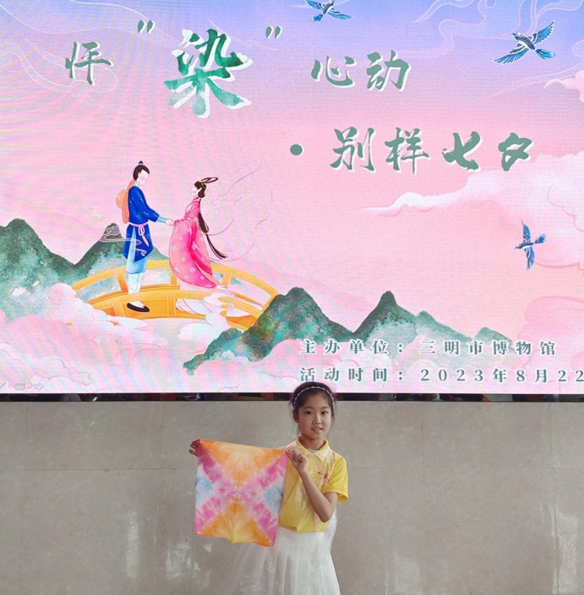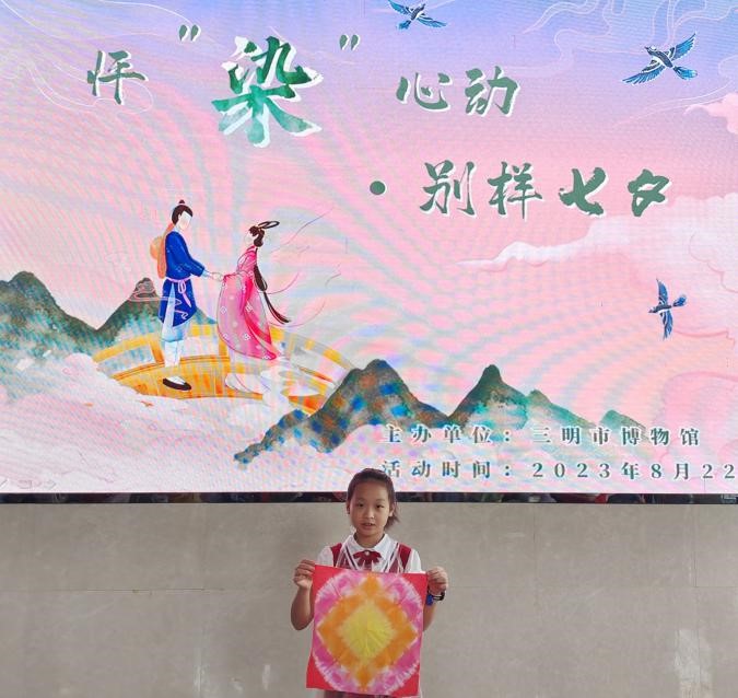 七夕,又稱乞巧節(jié),自古就是少女們乞取智巧、表達(dá)追求幸福美好心愿的節(jié)日,也是我國(guó)重要的民族傳統(tǒng)節(jié)日之一。七夕節(jié),三明市博物館,展開(kāi)“怦‘染’心動(dòng) • 別樣七夕”主題社教活動(dòng),帶領(lǐng)同學(xué)們一起認(rèn)識(shí)七夕,了解其來(lái)歷及有關(guān)習(xí)俗,體驗(yàn)非遺扎染藝術(shù),傳承傳統(tǒng)文化,分享合作的快樂(lè)。