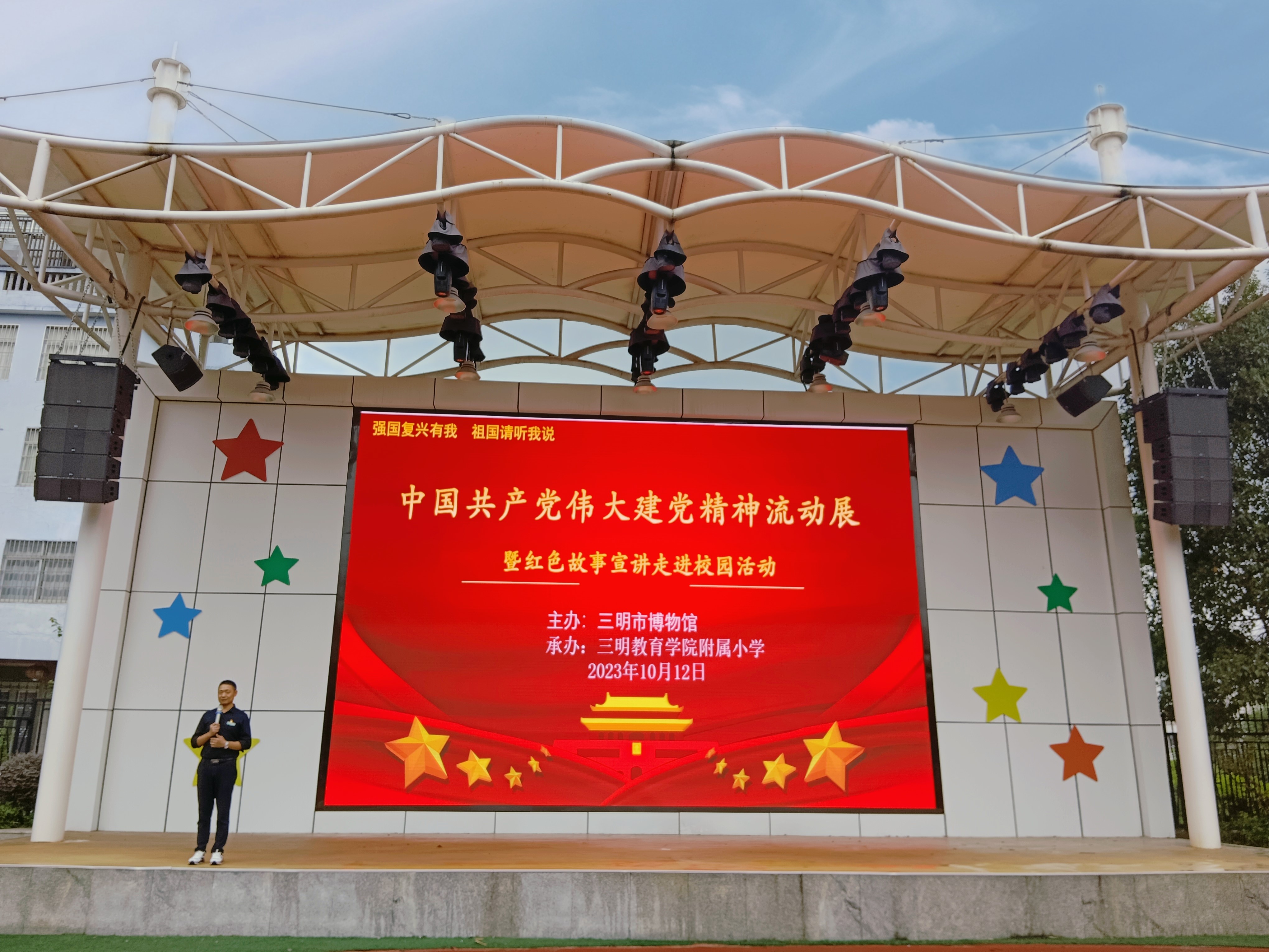 2023年 10月12日,三明市博物館“中國(guó)共產(chǎn)黨偉大建黨精神流動(dòng)展”暨紅色故事宣講走進(jìn)沙縣區(qū)三明教育學(xué)院附屬小學(xué)。本次活動(dòng)形式多樣、內(nèi)容豐富,分為故事宣講、流動(dòng)圖片展兩個(gè)部分進(jìn)行,將紅色故事和偉大建黨精神“搬進(jìn)”校園,為師生們送去別開(kāi)生面的參觀體驗(yàn)。