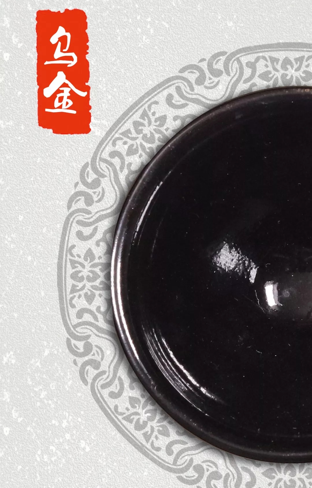 烏金釉,也稱(chēng)“紺黑釉”,有的表面烏黑如漆,有的則黑中泛青,也有的呈黑褐色或醬黑色。建窯烏金釉釉層普遍較厚,“色黑而滋潤(rùn)”,上乘者亮可照人,表現(xiàn)出莊重素雅之美。